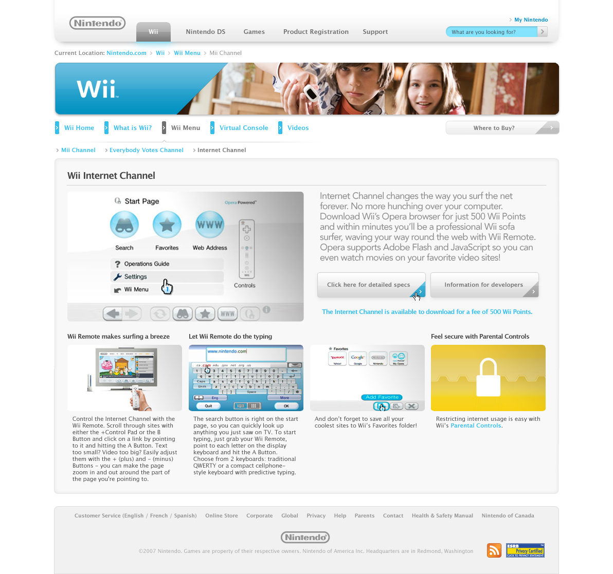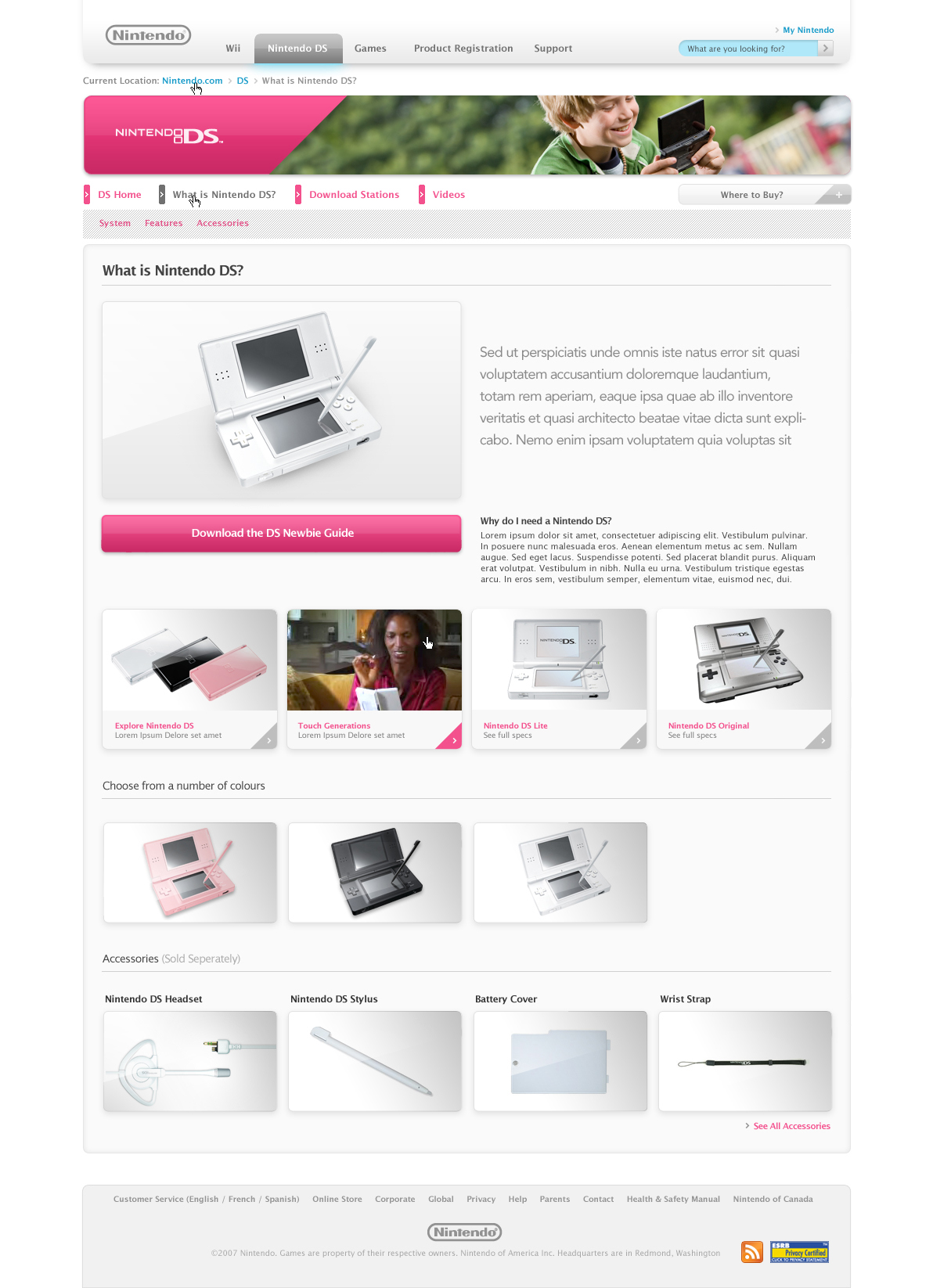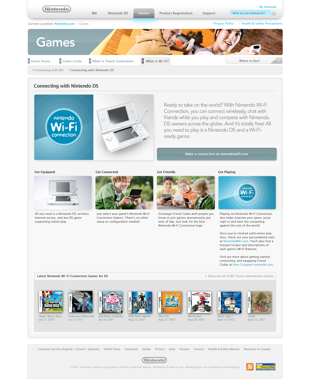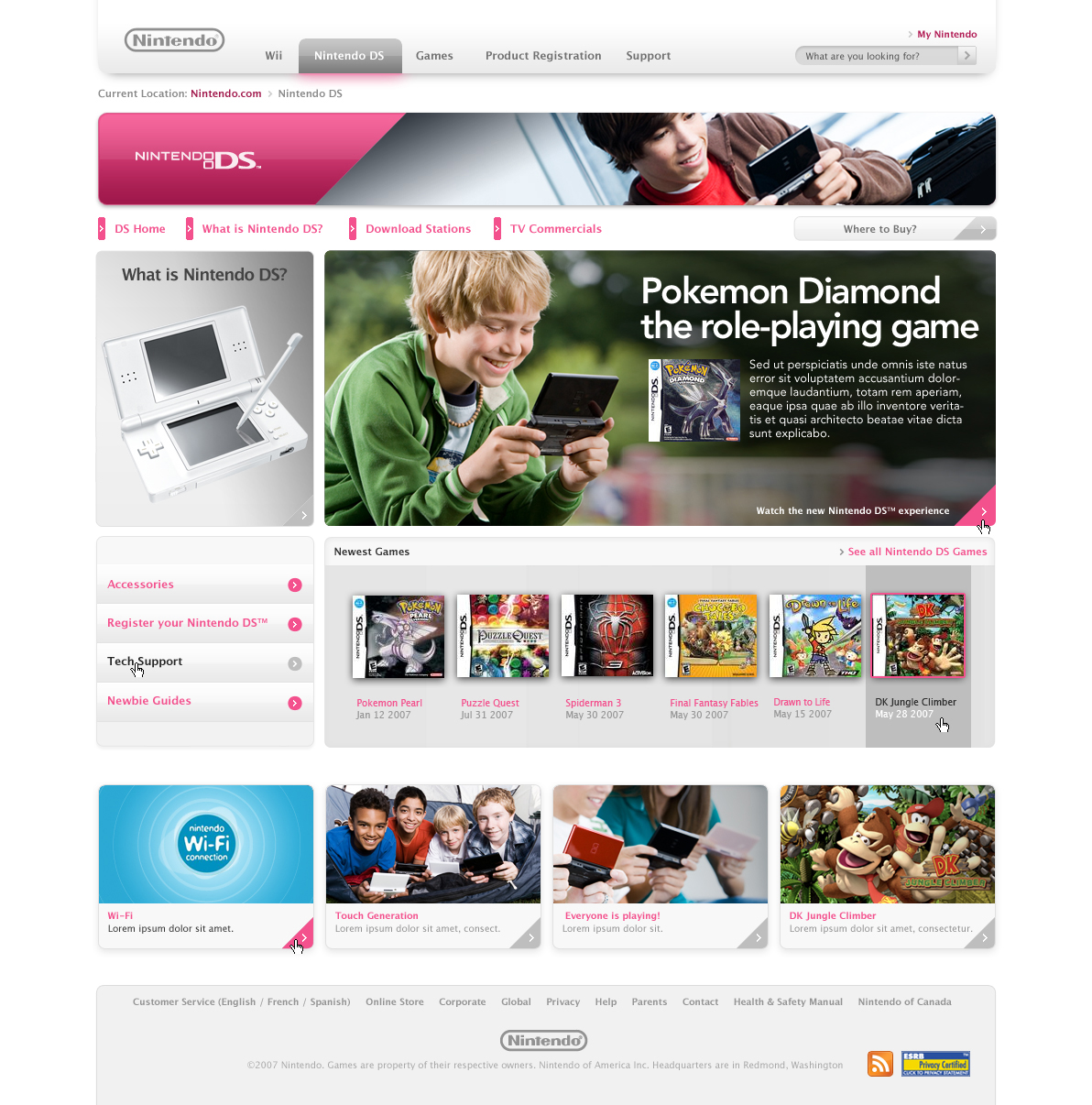 This is the third version of Nintendo’s website for North America. In these designs you’ll notice that the mascots and character’s presence were diminished to promote people’s interaction with the new hardware.