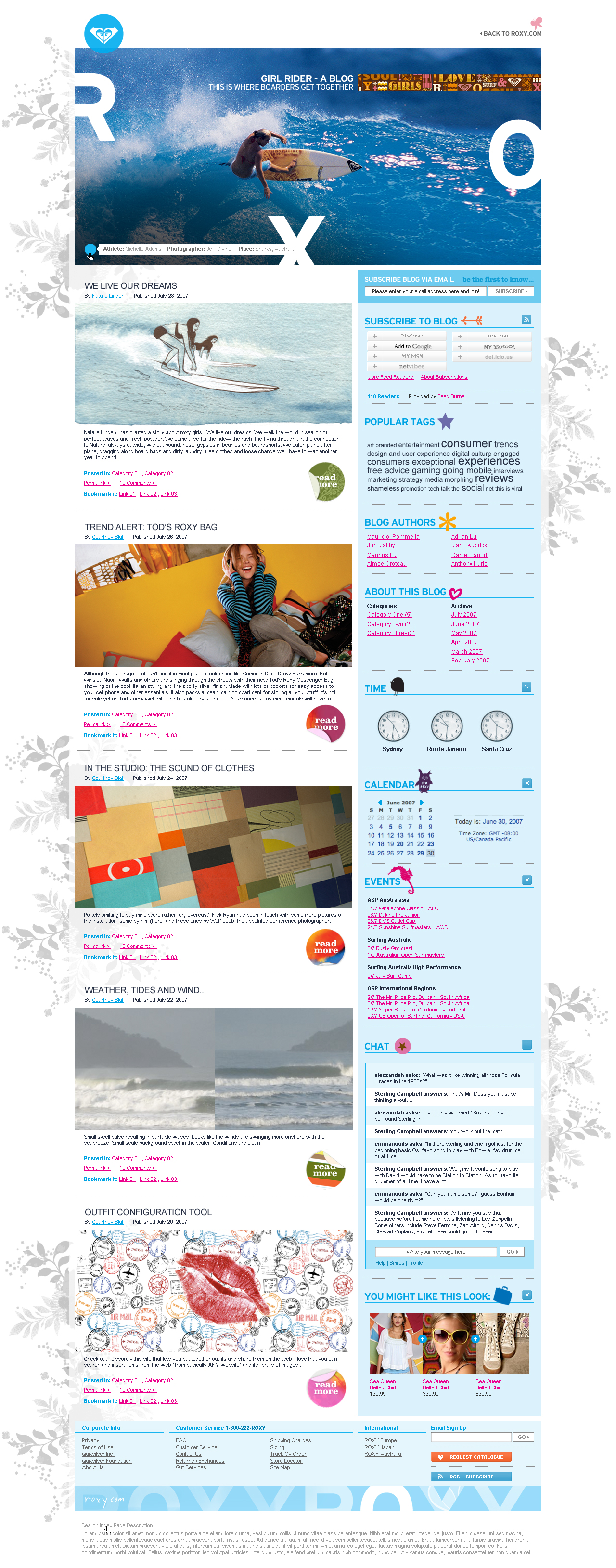 With most online surf shops being virtually indistinguishable from each other – generic surf and beach shots, uninspired product imagery – Roxy wanted to distinguish itself, and keep up to the lifestyle fashion brands. They also wanted to boost their profile becoming the first major surf brand to sell direct online. The creative team and I supported that mission with a complete redesign, and the social strategy to bring Roxy’s authenticity online.